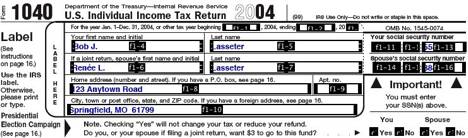 An instance of this procedure is shown below, continuing with our use of the IRS Form 1040 as an example: